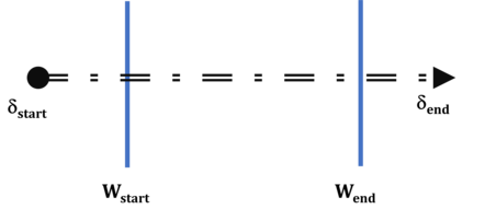 \(W\)(or any other dual-date range):\((W_\text{start} \le \delta_\text{start} \le W_\text{end} ) \vee (W_\text{start} \le \delta_\text{end} \le W_\text{end})\)This logical statement will fail to capture cases where\(\delta^T\)extends outside of\(W\):
